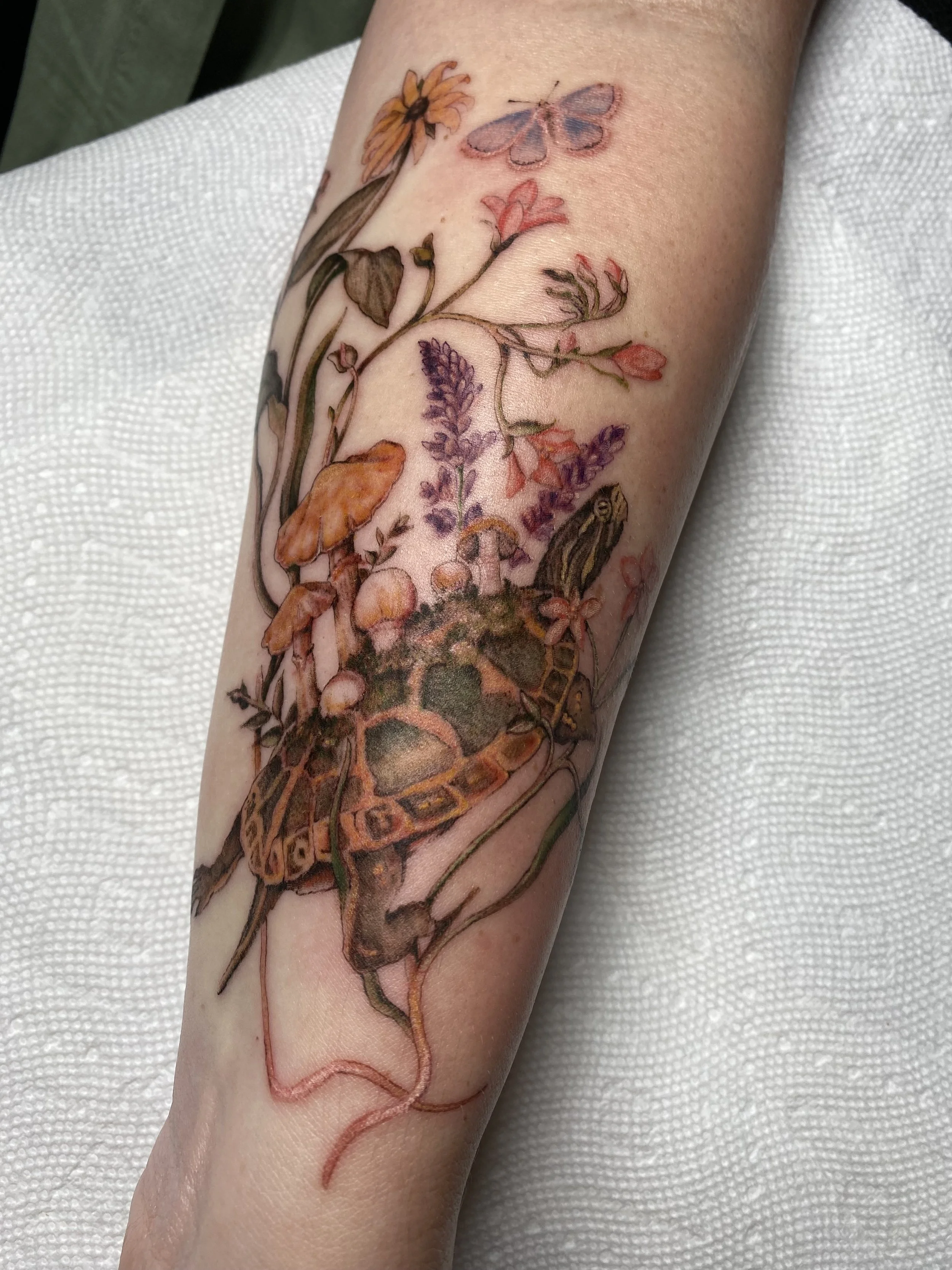 A creative collaboration is a one hour session that involves consulting and looking over a mock design for an already scheduled tattoo appointment. This consultation allows the artist and client to collaborate together on the design, size, and placement before committing to the tattoo process. Tattooing will not be a part of this session. Recommended for larger projects such as back pieces, chest pieces, body suits, etc.